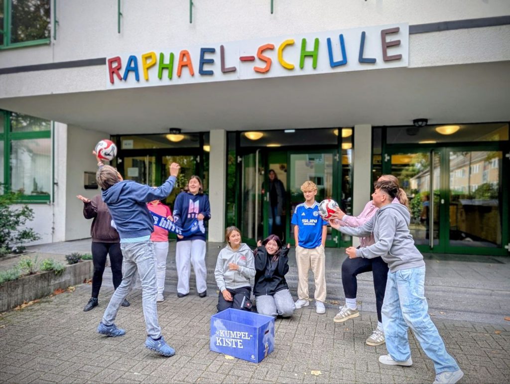 „Oh je, der Fußball ist kaputt.“ So oder ähnlich tönt es öfter von unserem Schulhof, wenn die Schülerinnen* wieder einmal einen Ball „zerbolzt“ haben oder er in den Weiten des Golfplatzes verschwunden ist. Damit dieser wichtige Pausensport und das soziale Miteinander des Teamspiels erhalten bleiben können, haben wir uns an die Stiftung unseres lokalen Fußballvereins „Schalke Hilft“ gewendet, um eventuell einen neuen Ball zu erhalten. Umso größer war die Freude, als die Stiftung uns sofort einige „echte Schalkebälle“ spendete! Nun ist das tägliche Fußballturnier gerettet und die Kinder freuen sich, von „ihrem Verein“ so tolle Bälle erhalten zu haben. Auch wir freuen uns von Herzen und danken der Schalke 04 -Stiftung für die schnelle und unkomplizierte Unterstützung. Wir sagen von Herzen „Glück Auf”!( Autorin: Rebecca Burke)