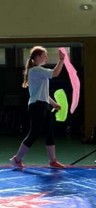 Vor vielen Zuschauern zeigte die Klasse von Frau Fischer, was sie in der Schulwoche zuvor gelernt hatten. Dazu gehörte neben der Akrobatik, Zauberei und Clownerie auch spektakuläres wie das Liegen auf einem echten Nagelbrett. Liebevoll wurden die Kinder dafür von dem Zirkusteam „Zappzerapp“ begleitet.